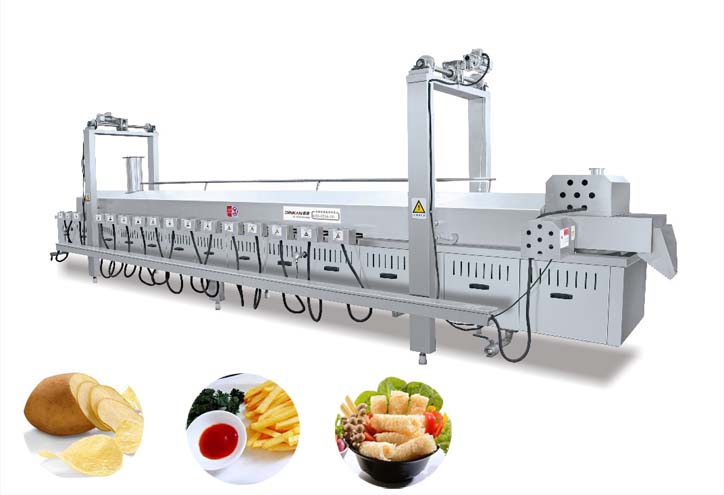 Potato chip processing production line, fried French fries, fried banana chips. This frying production line can also be processed. Different production capacities require different lengths of equipment. Tell me your requirements and budget, and we will recommend a reasonable equipment solution