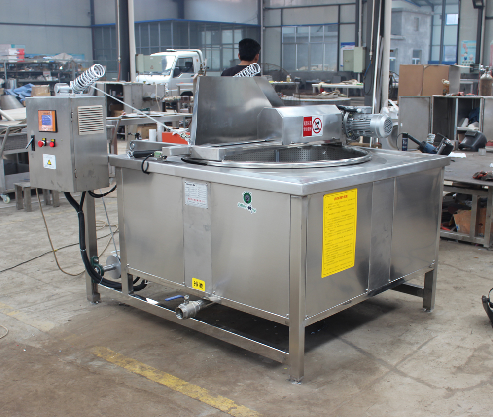 Equipment introduction: The main material of the equipment is food-grade 304 stainless steel. Frying basket size: Diameter: 1000mm, Depth: 350mm, frying basket hole size: 3mm, oil capacity: 250L (capacity during normal frying). The equipment is equipped with an automatic stirring system (the stirrer varies according to different products), automatic discharging system, heating system, automatic temperature control system, high-temperature warning and power-off system, heat preservation system, control system, and button operation mode. Electric heating tube power: 48kw, two-gear control, with advantages such as fast temperature rise, low energy consumption and long service life.