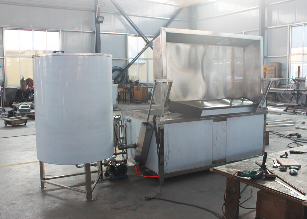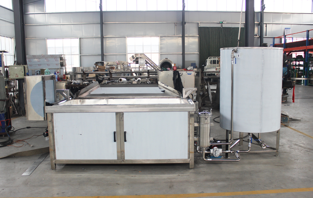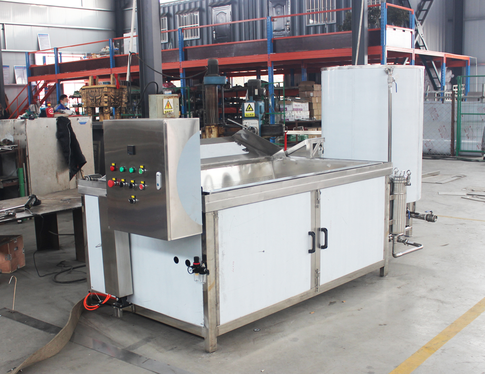 Equipment introduction: The main material of the equipment is food-grade 304 stainless steel. Frying basket size: 1800*1000*350mm, frying basket hole size: 3mm, oil capacity: 420L (capacity during normal frying). The equipment is equipped with an automatic discharging system, heating system, automatic temperature control system, high-temperature warning and power-off system, heat preservation system, control system, and button operation mode. Electric heating tube power: 120kw, two-gear control. The electric heating tubes are low-power ones, 1.5kw per tube, 80 tubes in total, with advantages such as no residue burning and long service life.