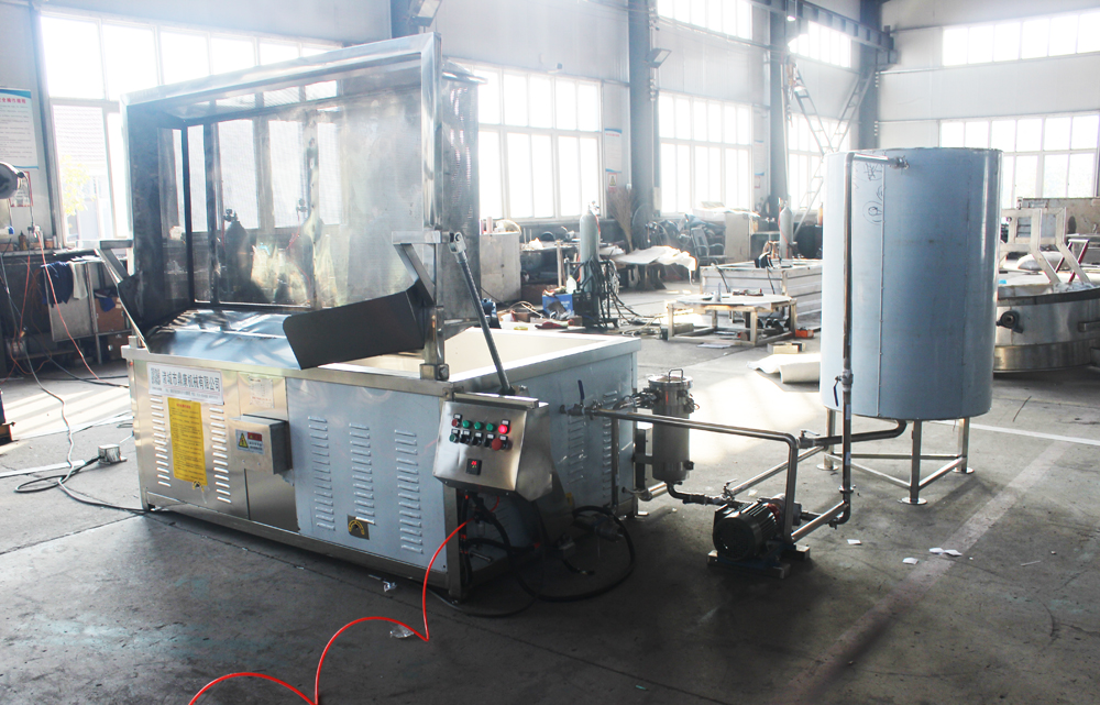 Equipment introduction: The main material of the equipment is food-grade 304 stainless steel. Frying basket size: 1800*1000*350mm, frying basket hole size: 3mm, oil capacity: 450L (capacity during normal frying). The equipment is equipped with an automatic discharging system, heating system, automatic temperature control system, high-temperature warning and power-off system, heat preservation system, control system, and button operation mode. It adopts gas fire row heating, featuring fast temperature rise, low energy consumption, no residue burning, and long service life.